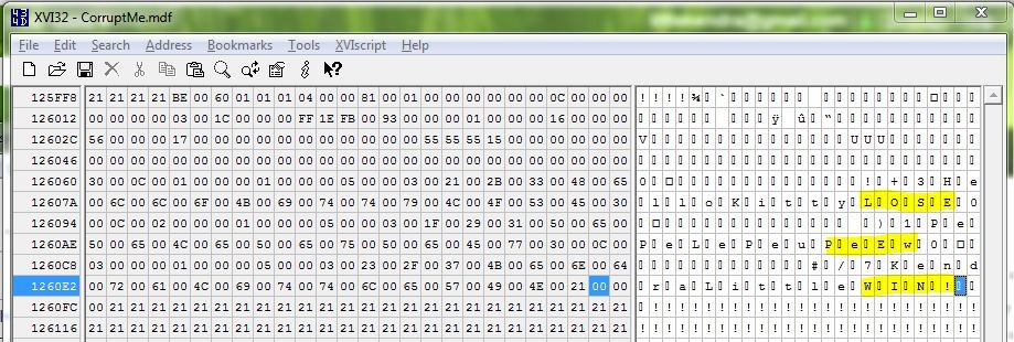 You may want to read my prior post on causing database corruption with a hex editor here. This post explains how to edit data in unsupported ways, and these techniques should never be used near a production server, or a database of any value at all. Make sure to wash your hands before and after using these practices, and having a change of clothes handy is also advisable.