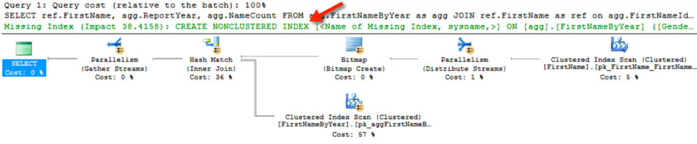 Not only will you only ever see one hint at the top of the plan, it isn’t necessarily the index that SQL Server thinks will help the most! And if you right click on the plan and script the index to a new window, you only get the index request from the green hint. If there’s another one, it doesn’t script.