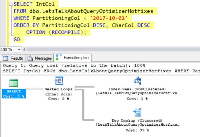 To make sure this was as good as it sounded, I set up a repro for a bug fixed after SQL Server 2016 RTM which requires enabling TF4199 or QUERY_OPTIMIZER_HOTFIXES as part of the solution.