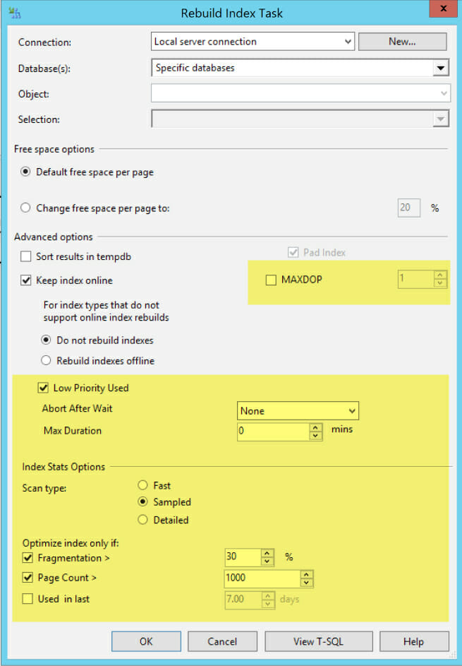 Here’s the updated Index Rebuild task. New stuff is highlighted in yellow: