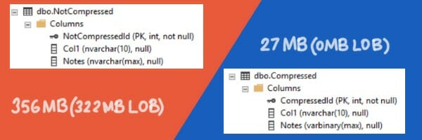 One cool little feature in SQL Server 2016 is COMPRESS(). It’s a TSQL function available in all editions that shrinks down data using the GZIP algorithm (documentation).