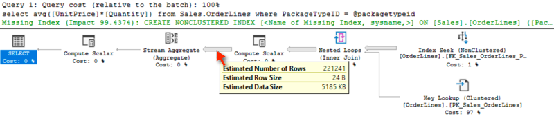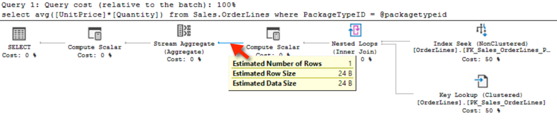 The plan looks like this – notice that @packagetypeid is parameterized…