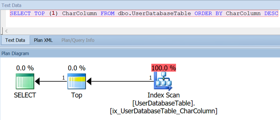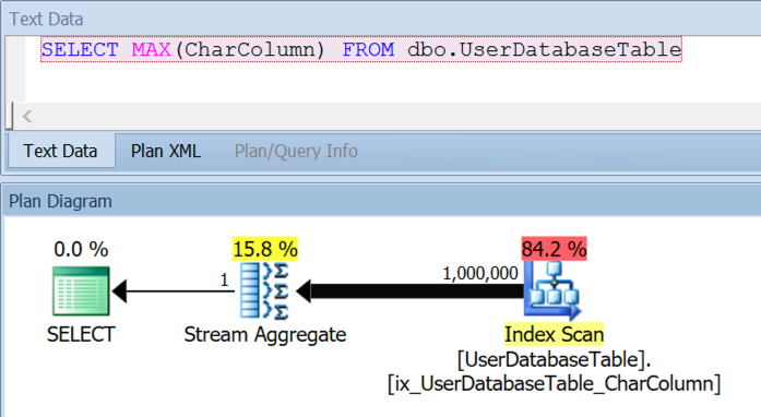 The very first thing I tested was whether or not this “scan all the rows and push them into a stream aggregate for MAX” issue happened against other CHAR columns.
