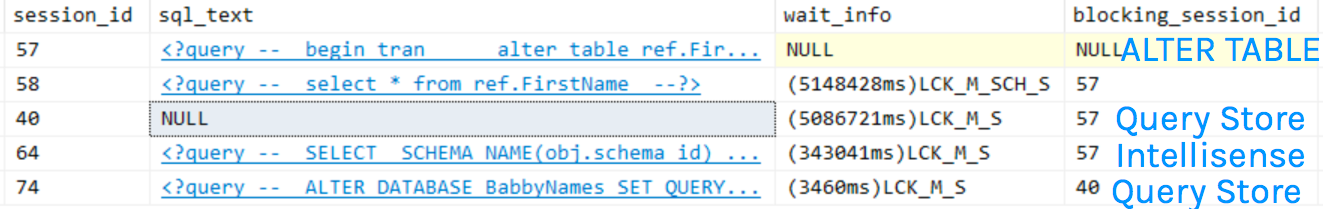 That’s a good thing, but it is probably one of the reasons that Query Store reads from the same system tables that may be locked if we modify the schema of objects.