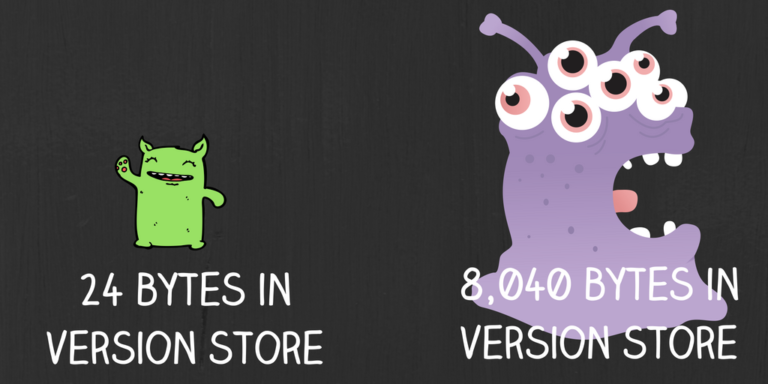 But after the webcast, I realized that the impact on the version store isn’t simply on the number of updates and deletes run. It will also vary based on the width of your rows – how many columns are in the table, what data types the columns have, and what data you have in the table.