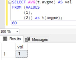 Description 1: SQL Server rounds integers “toward zero”. (When the average was positive, we got the ‘floor’. When the average was negative, we got the ‘ceiling’.)
