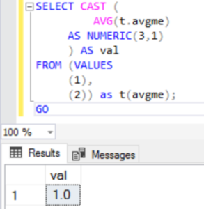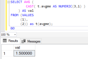 Here we finally have an example where I am changing the data type inside the AVG, and we are casting to a numeric type with precision of three, scale of one. (One number past the decimally bit!)