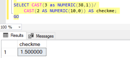 In fact, if you to the trouble to see what type we end up with here (like by selecting the results into a temp table and inspecting the data types), this is numeric(38,6). 38 is the highest precision you can get with numeric.