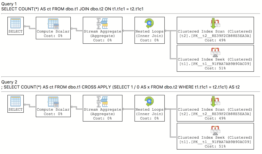 Sometimes a query using APPLY can be “transformed” into a join operation, and this is one of those cases. You can read more about this in Paul White’s article here.