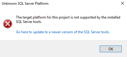 I recently set up Redgate’s SQL Change Automation in Visual Studio 2017, and I ran into a confusing error when I started trying to use it. For any other folks out there searching on “Unknown SQL Server Platform,” here’s how I got past it.