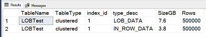3. Check how much data is in dbo.LOBTest
